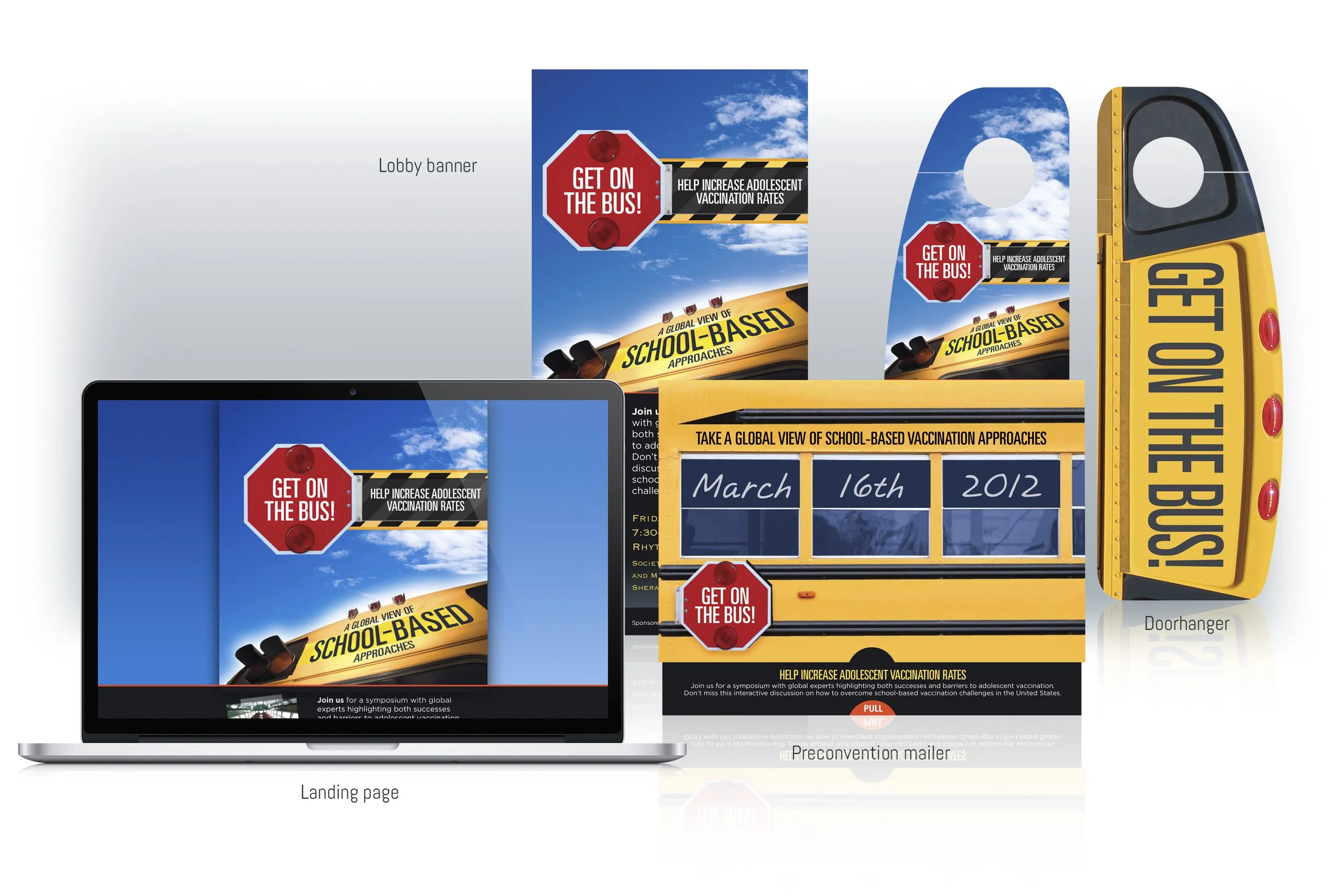 The Get On The Bus campaign was designed to build attendance for the Society of Adolescent Health & Medicine’s symposium on increasing adolescent vaccination rates ahead of the launch of Pfizer’s Meningoccocal B vaccine.